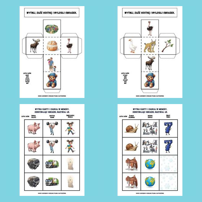 • kostki obrazkowe do samodzielnego wycięcia i sklejenia,