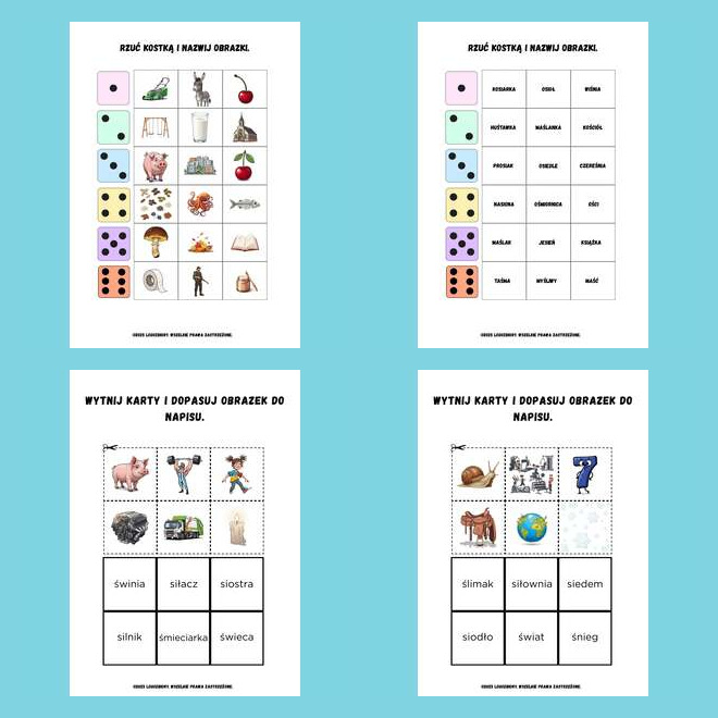Pakiet kart pracy został opracowany z myślą o skutecznym i przyjemnym utrwalaniu głosek ciszących (Ś, Ź, Ć, DŹ). Kolorowe ilustracje i różnorodne formy zadań sprawiają, że dziecko z radością angażuje się w ćwiczenia, a nauka poprawnej wymowy staje się zabawą. Materiały doskonale sprawdzą się w terapii logopedycznej, w przedszkolu oraz w domu.
