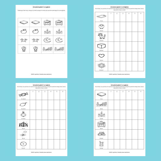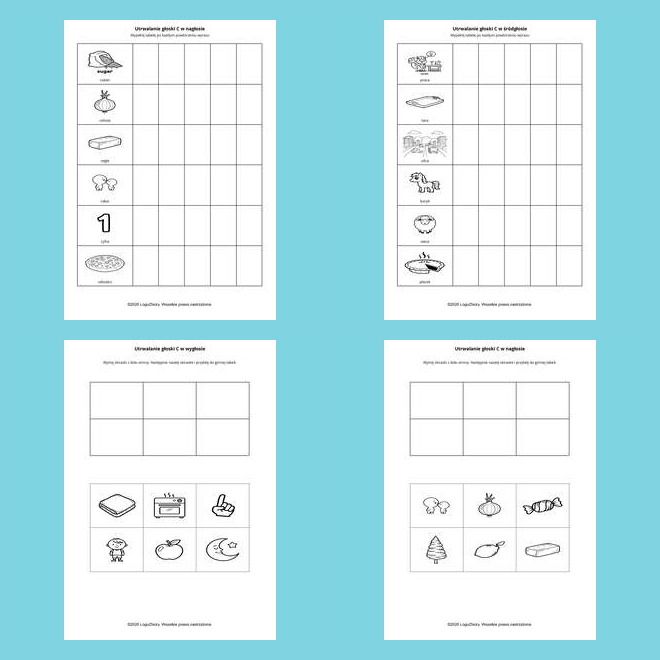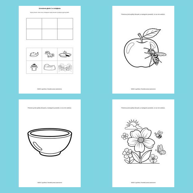 zadania zaprojektowane tak, by krok po kroku wspierać prawidłową wymowę głosek syczących.