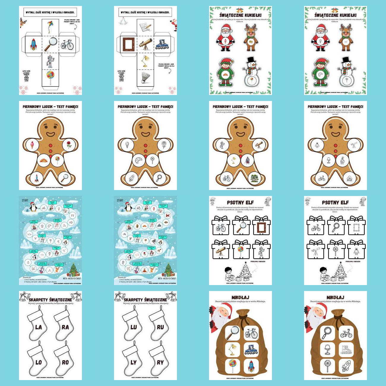 Pakiet rozwija nie tylko mowę, ale również pamięć, koncentrację, motorykę małą oraz koordynację wzrokowo-ruchową – wszystko w magicznej, bożonarodzeniowej atmosferze. 🎅🎄