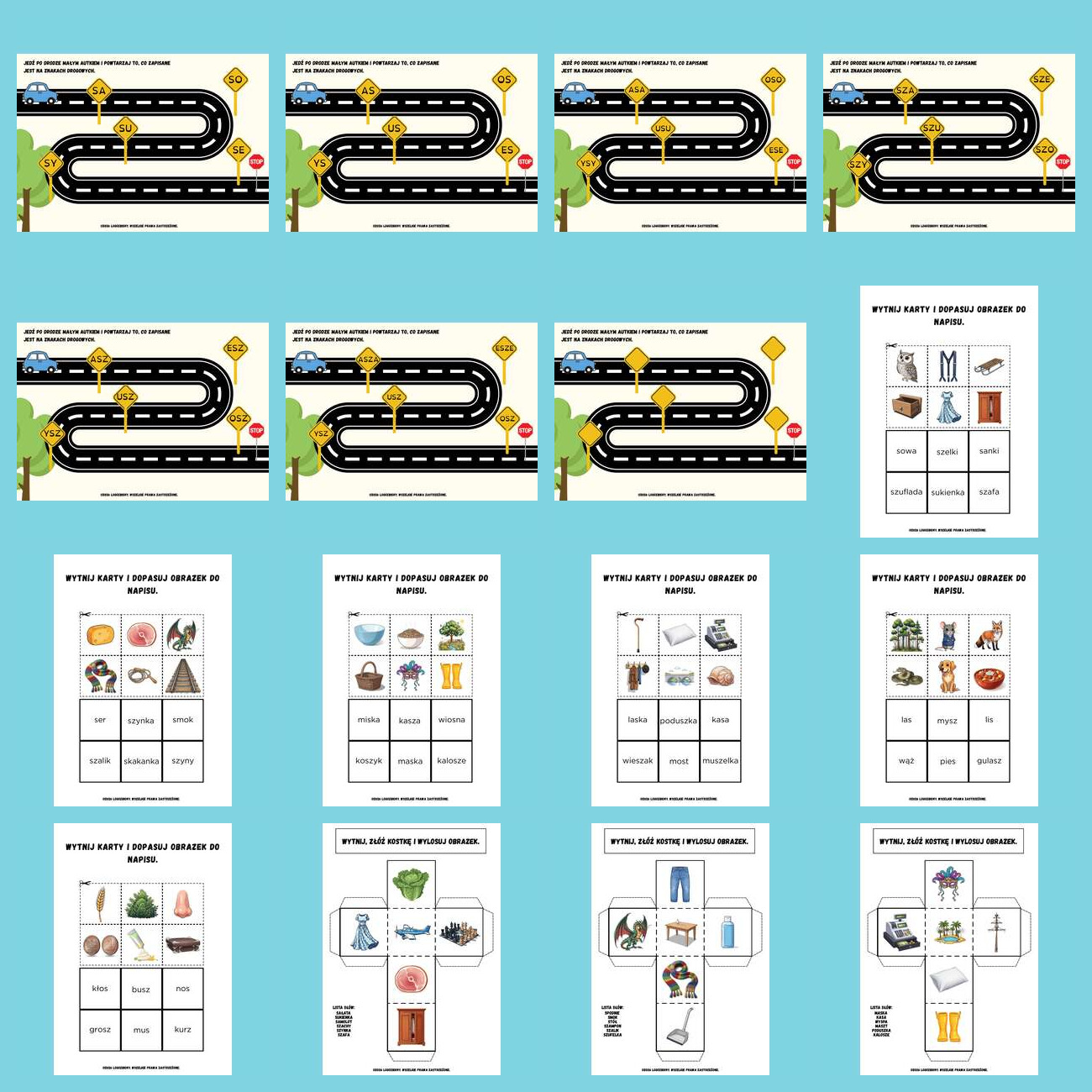 Różnicowanie głosek S i SZ w nagłosie, śródgłosie i wygłosie – paczka (43 strony, PDF do druku)